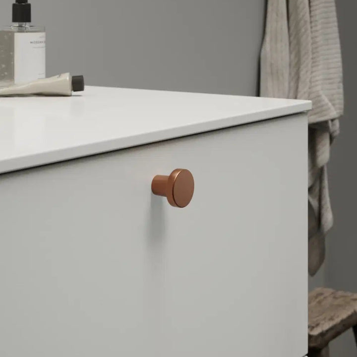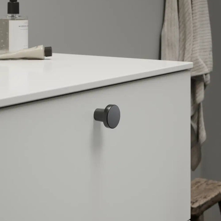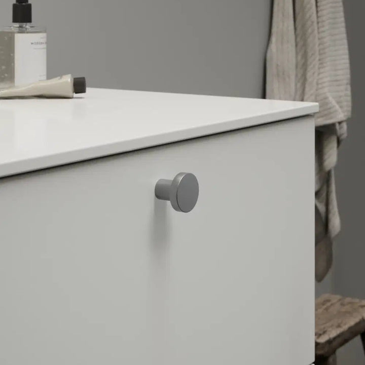 The Dot Knob embraces pure simplicity, where form is distilled to its essential elements. Composed of two perfectly proportioned cylinders, it achieves a harmonious balance between geometry and functionality. Its sculptural precision transforms minimalism into an inviting tactile experience—striking in its clarity yet effortlessly adaptable. Viewed from the front, the Dot Knob presents a smooth, understated silhouette, while its profile reveals a thoughtful interplay of proportions, subtly enhancing the surrounding space. A study in refinement, it exemplifies the beauty of reduction while remaining timeless in its versatility.