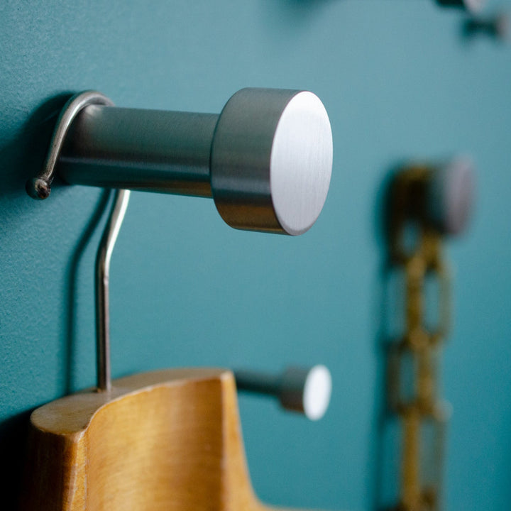 Perfect for the entry or as towel hooks in the bathroom. Anywhere you want beautiful organization. The Dot Hook stands taller than the Dot Knob / Hook but can be combined for use on cabinets.
