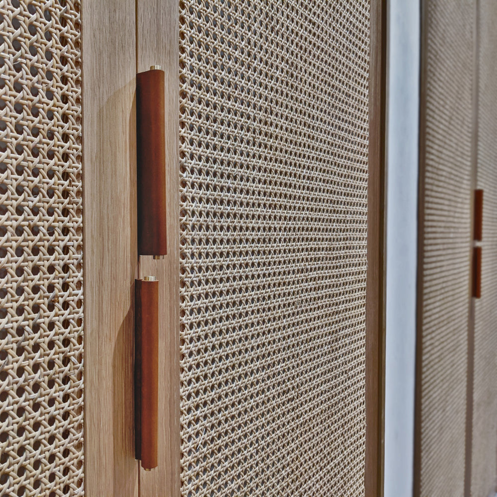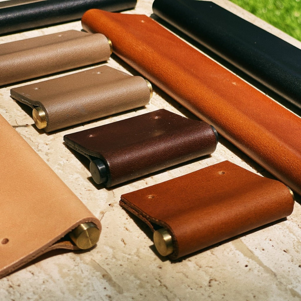 Each leather-wrapped pull features hand-stitched full-grain leather, offered in a curated range of tones. Wood finishes are applied to select pull ends and accents, adding warmth and natural variation to the Chapman & Bose aesthetic.