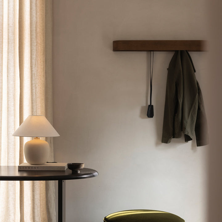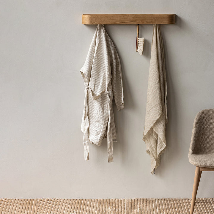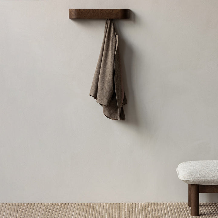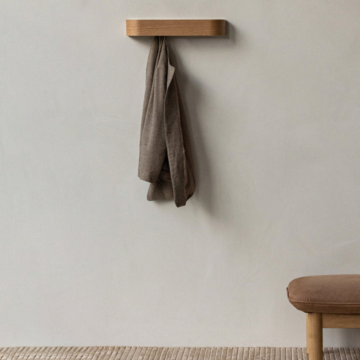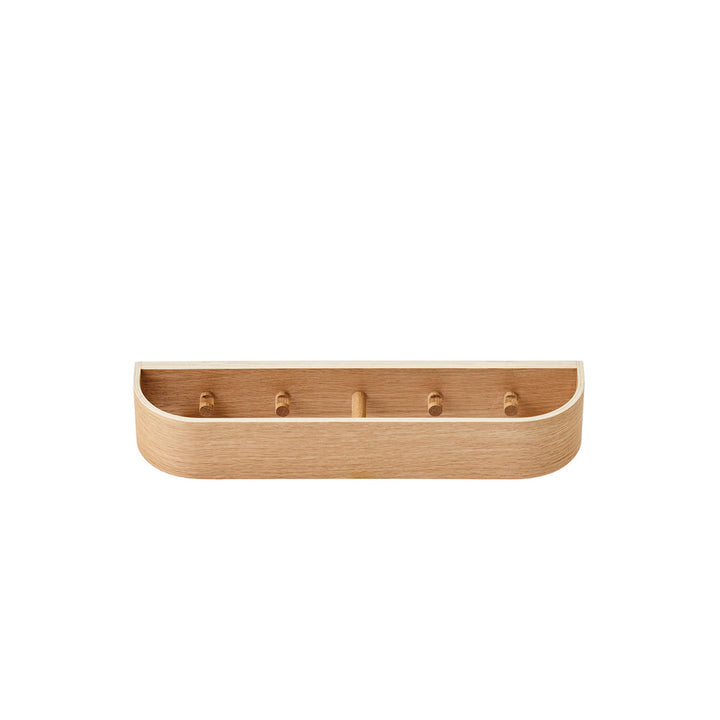 With its careful combination of gently rounded edges, warm wood and discreet functionality, the Epoch Rack offers streamlined storage for spaces large and small. Crafted in natural or dark stained oak, the wall-mounted rack features hidden hooks, and the space-saving design can be suspended alone or in rows of multiples.