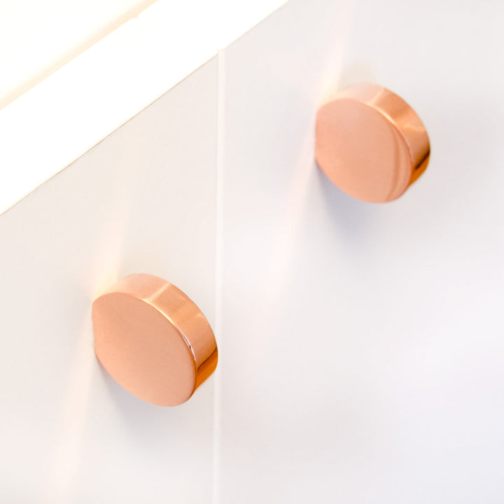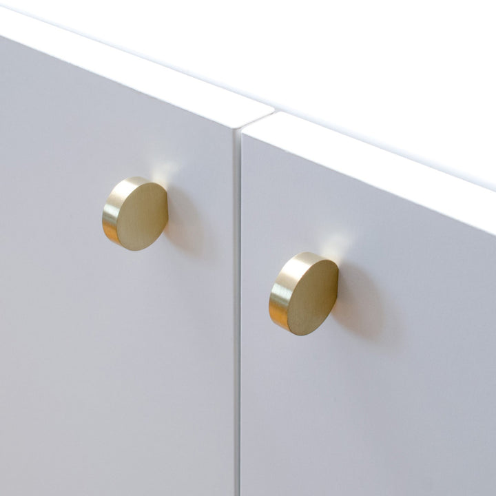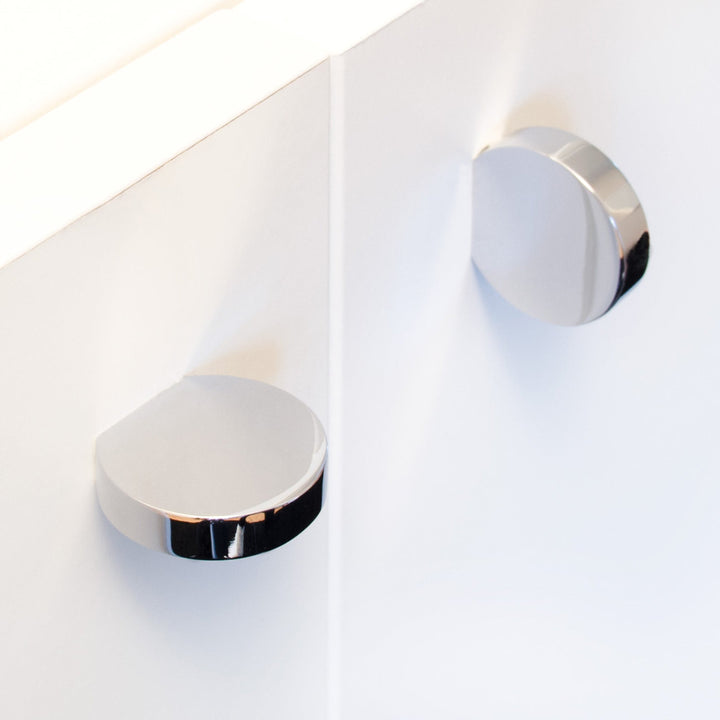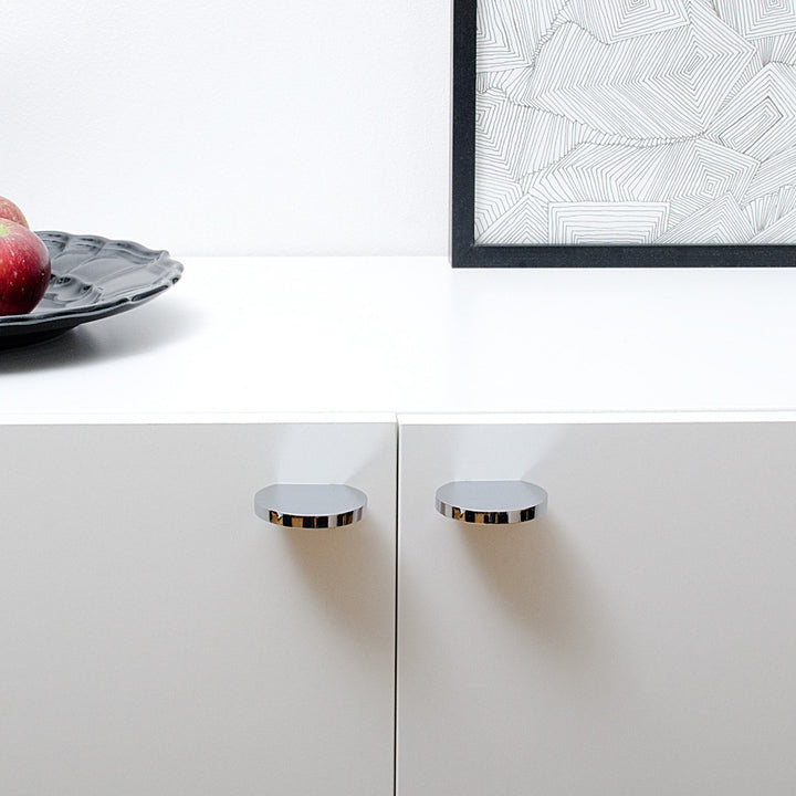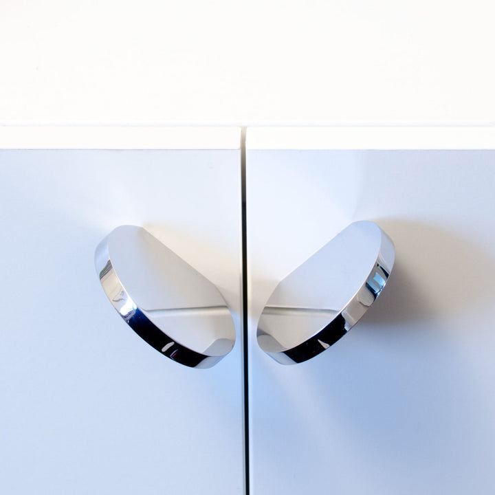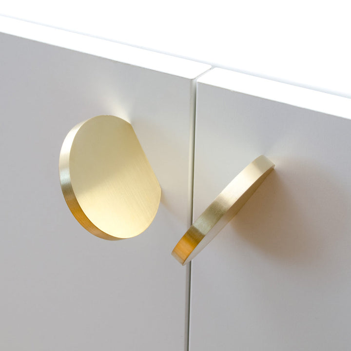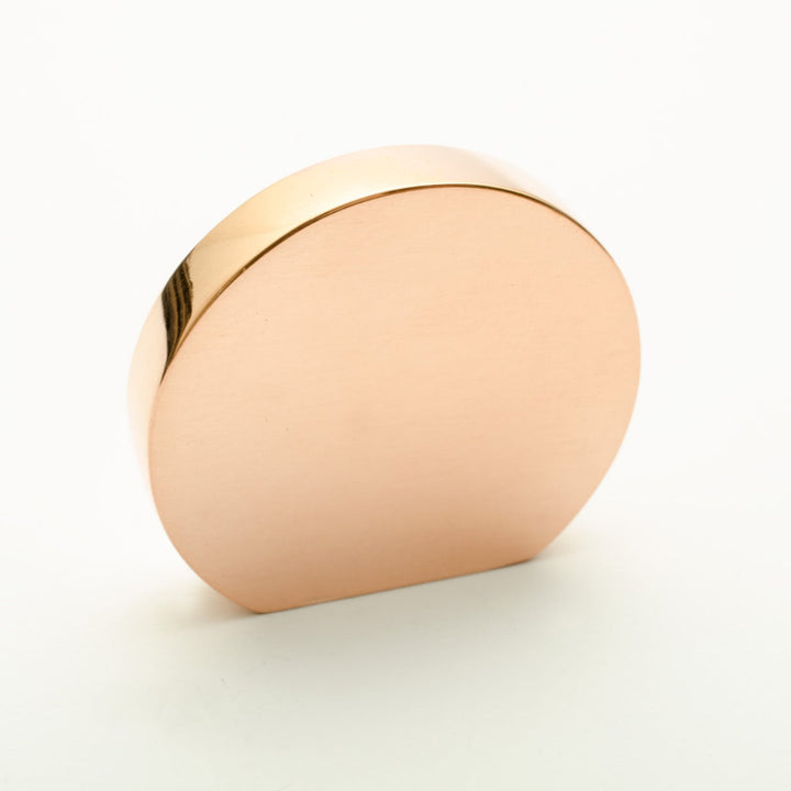 These semi circular knobs are available in three different sizes. Solid, quality knobs for cabinetry. Can be mounted horizontally or vertically.