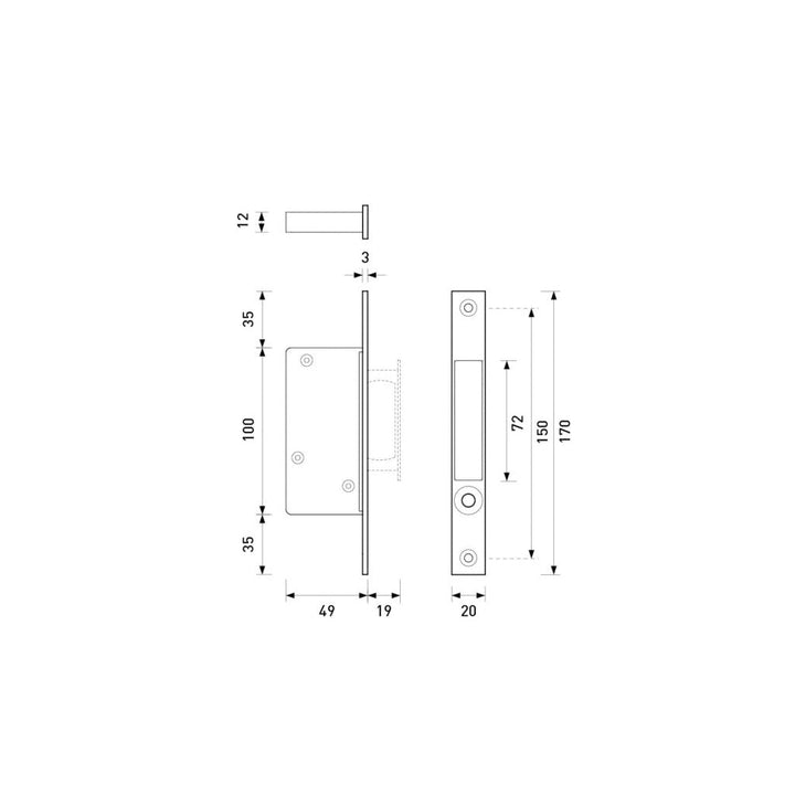 It has a slim faceplate, smooth push-button release, and a narrow 48mm body depth making it suitable for all sliding wood passage doors, including narrow stile timber and aluminium pocket doors.