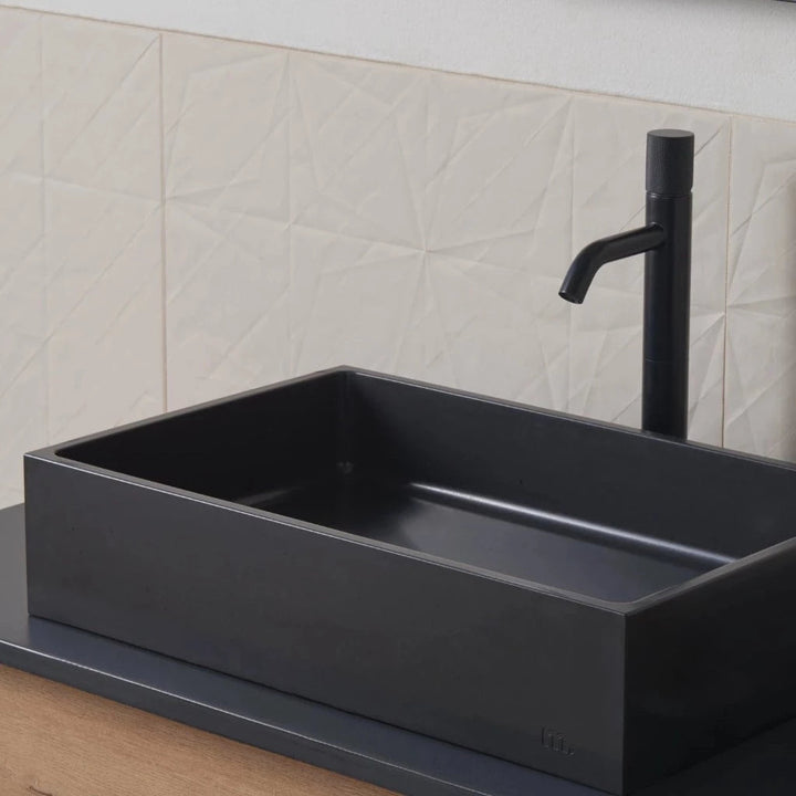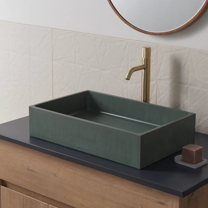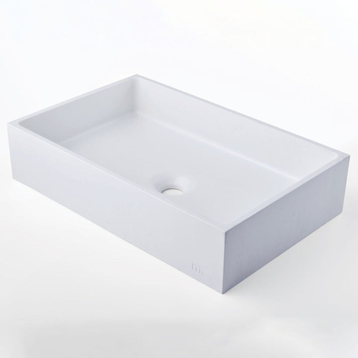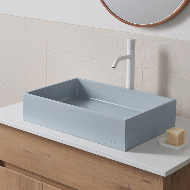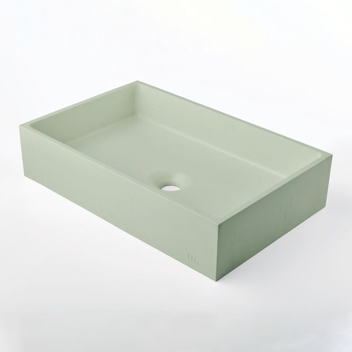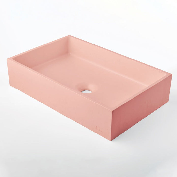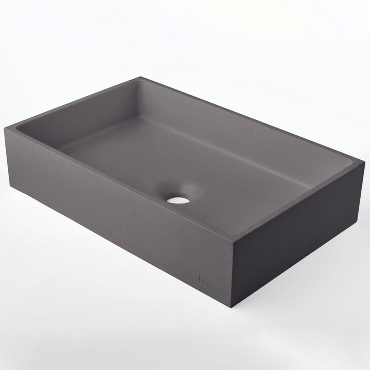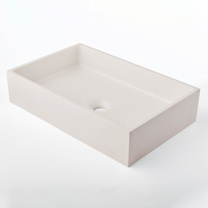 mudd. concrete sinks feature an embossed artisan mark which can be displayed or concealed depending on installation.