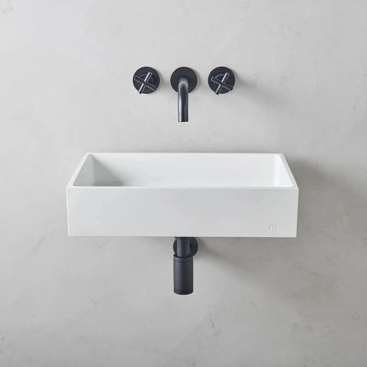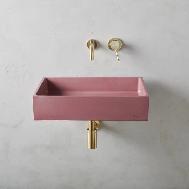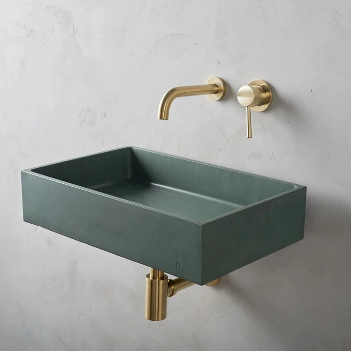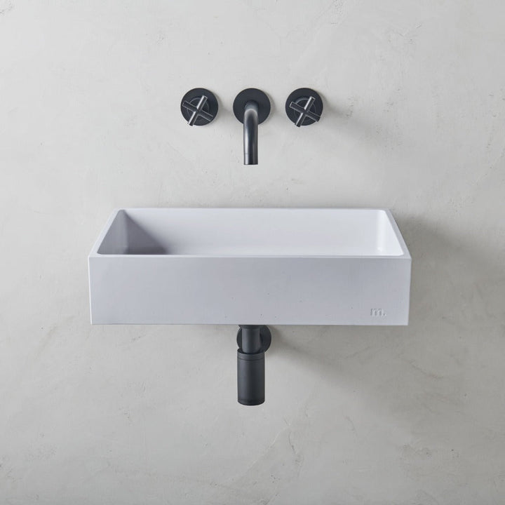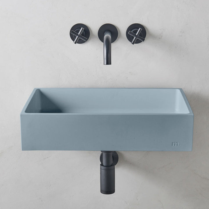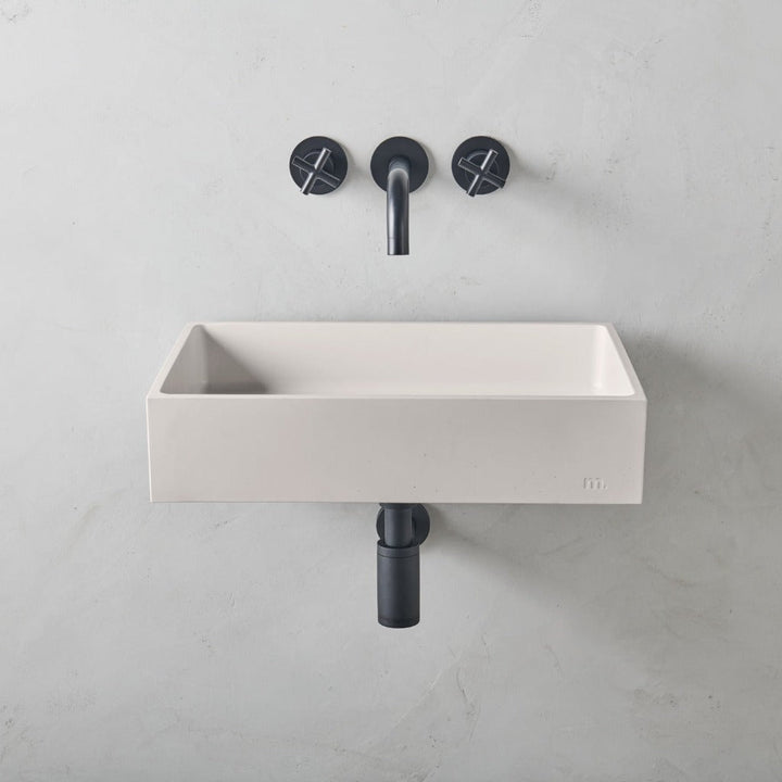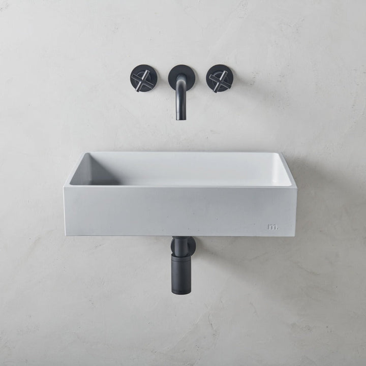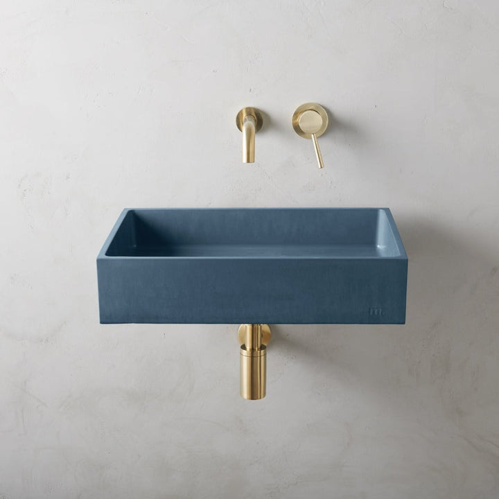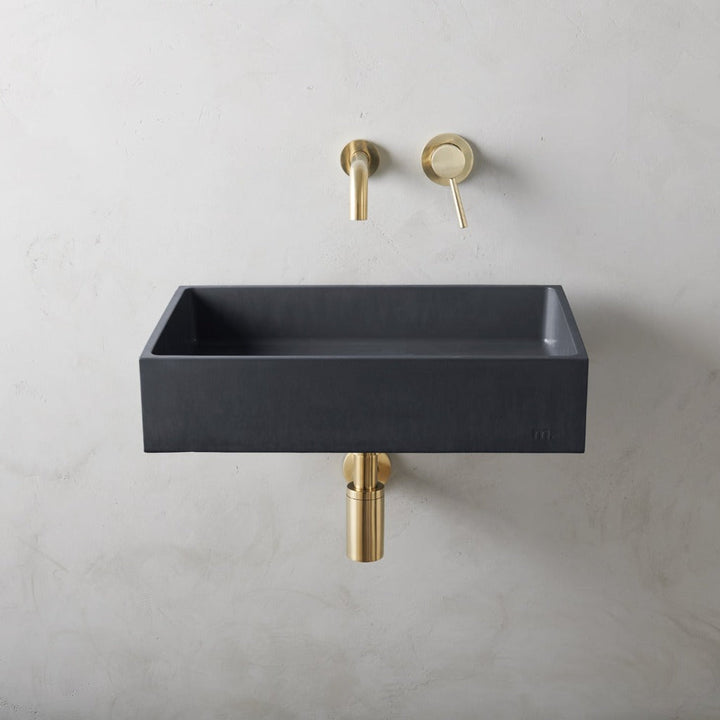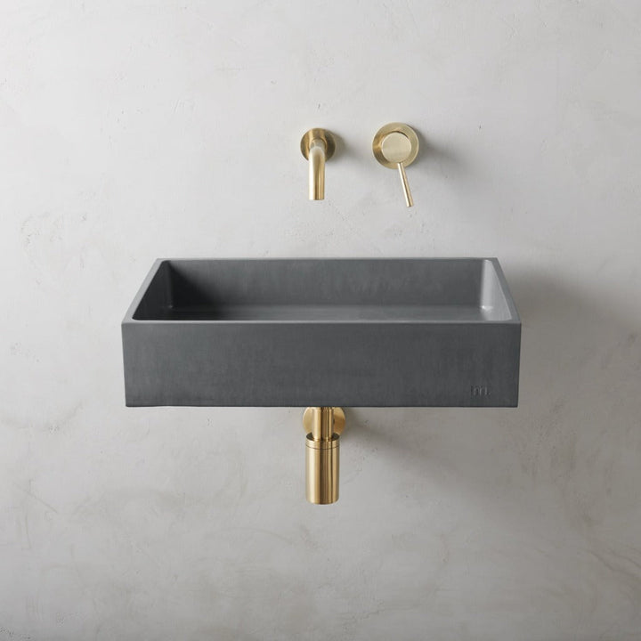 mudd. concrete sinks feature an embossed artisan mark which can be displayed or concealed depending on installation.