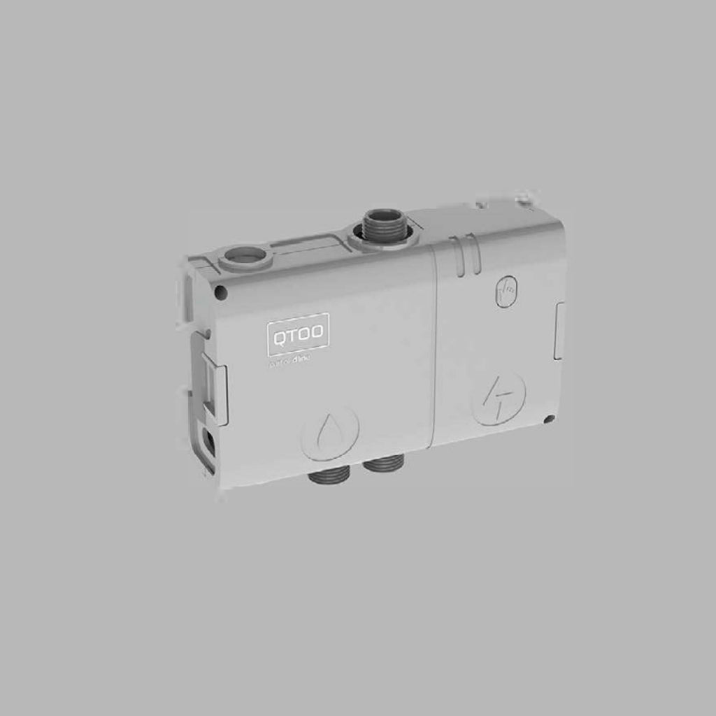 The Qtoo flexbox is a necessary component for Qtoo Sensor taps: Single Hole Sensor Tap, Wall Sensor Tap 190 mm, and Wall Sensor Tap 250 mm. It must be paired with Flexbox Power Supply.