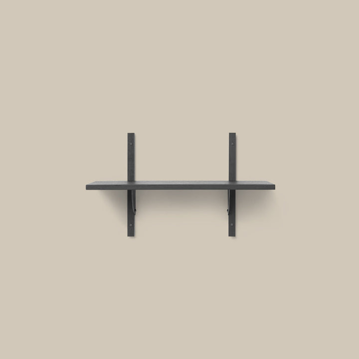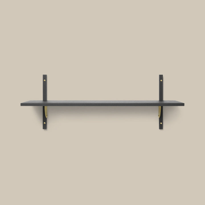 A new and modern take on Mid-century shelving units, Sector is defined by its sturdy simplicity and classic combination of wood and brass – available with natural oak veneer or black stained ash veneer shelves, and polished brass or blackened brass brackets. Available in two sizes, the shelf attaches to a wall with the accompanying solid wood uprights with visible screws. Use it to display favourite objects in a living room or storage jars in a kitchen. Other items in the collection are the Sector Triple Shelf and the Sector Desk.