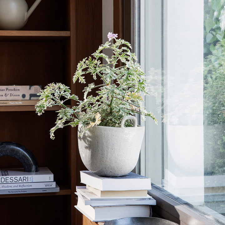 Made with a distinct sort of stoneware with a grainy, raw texture, the Speckle line presents an organic, handmade look and feel. With its fluid silhouette, the pot with two handles mirrors nature's irregularities, though with the elegant addition of the high-gloss finish. The Speckle Pots forms a sweet home for small plants, but you may also want to use it for storage of smaller items on a shelf or as a decoration on your dinner table.