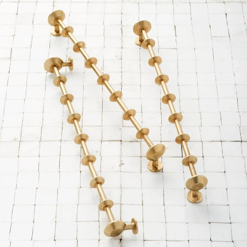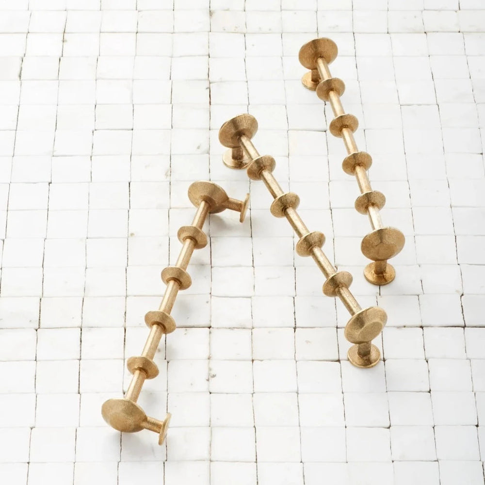 The SPUL Handle is a playful, yet bold pull. Originally inspired by handcrafted spool furniture, this series of cast bronze hardware hints to the sentimental while still imparting a modern and chic aesthetic. The various shapes in the series are made from sand cast bronze and have a perfectly imperfect surface texture.