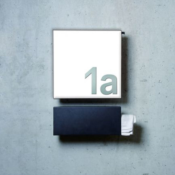 Self-adhesive house numbers or letters made of 1 mm-thick stainless steel can be applied for labelling purposes.