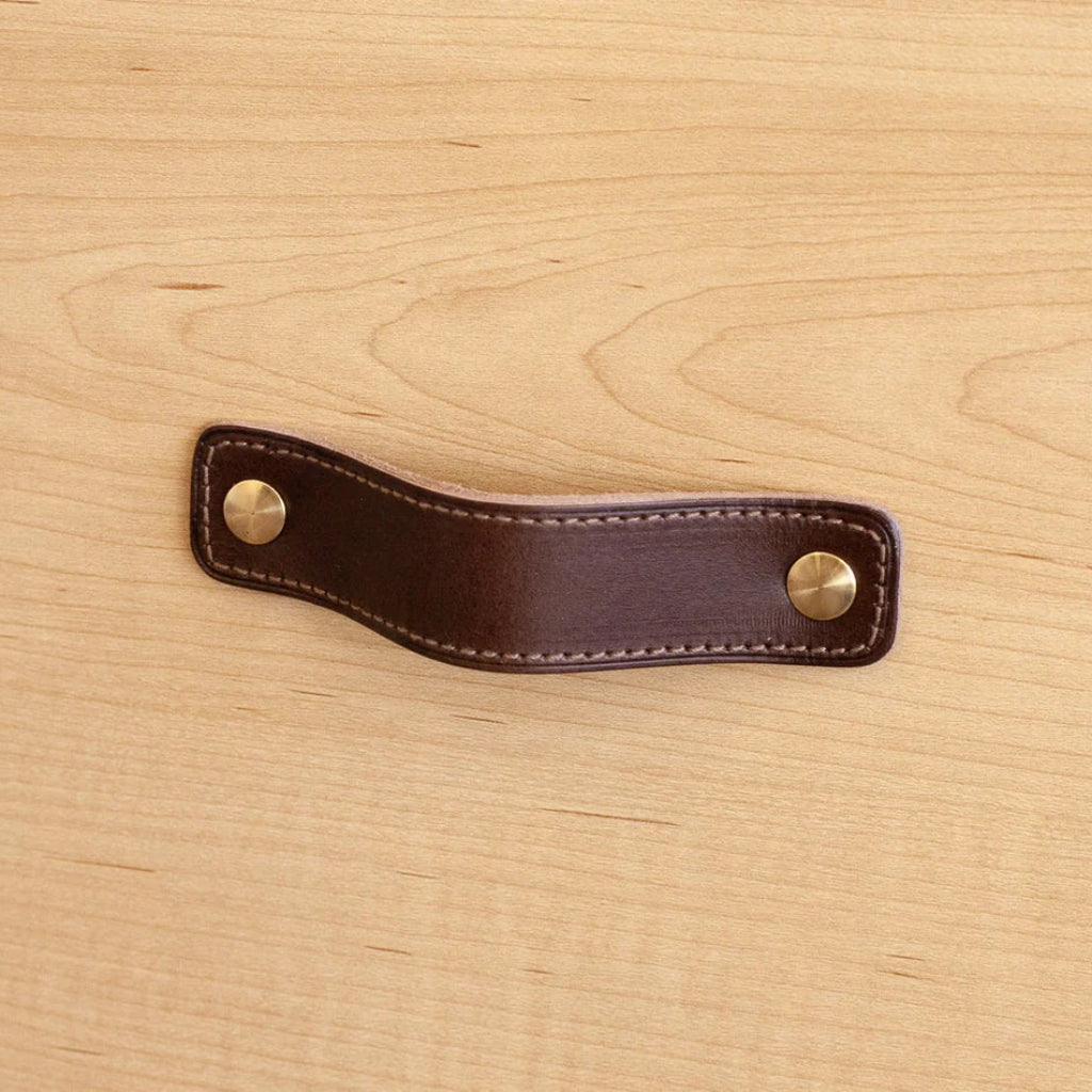 Each leather-wrapped pull features hand-stitched full-grain leather, offered in a curated range of tones. Wood finishes are applied to select pull ends and accents, adding warmth and natural variation to the Chapman & Bose aesthetic.