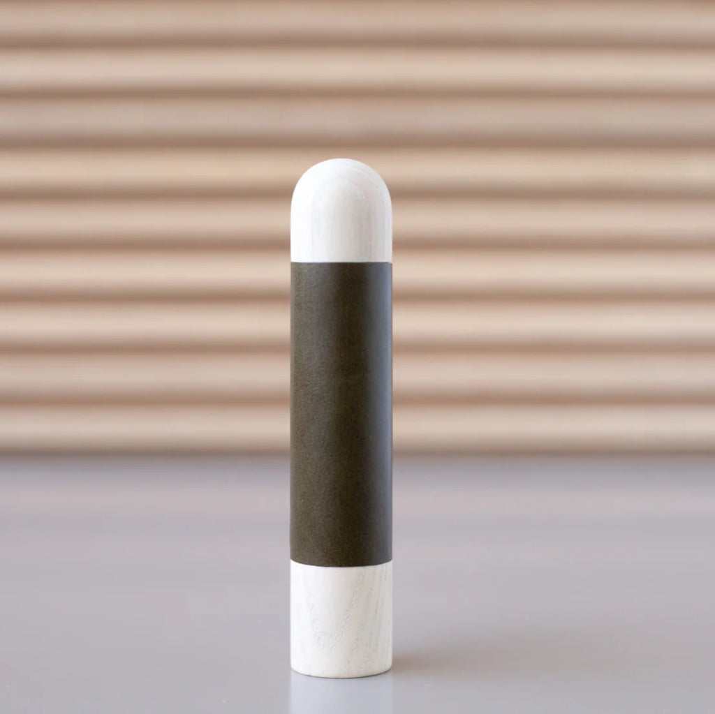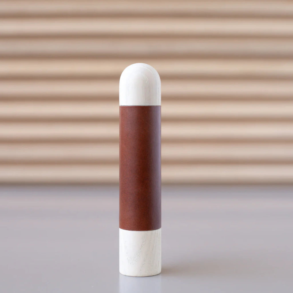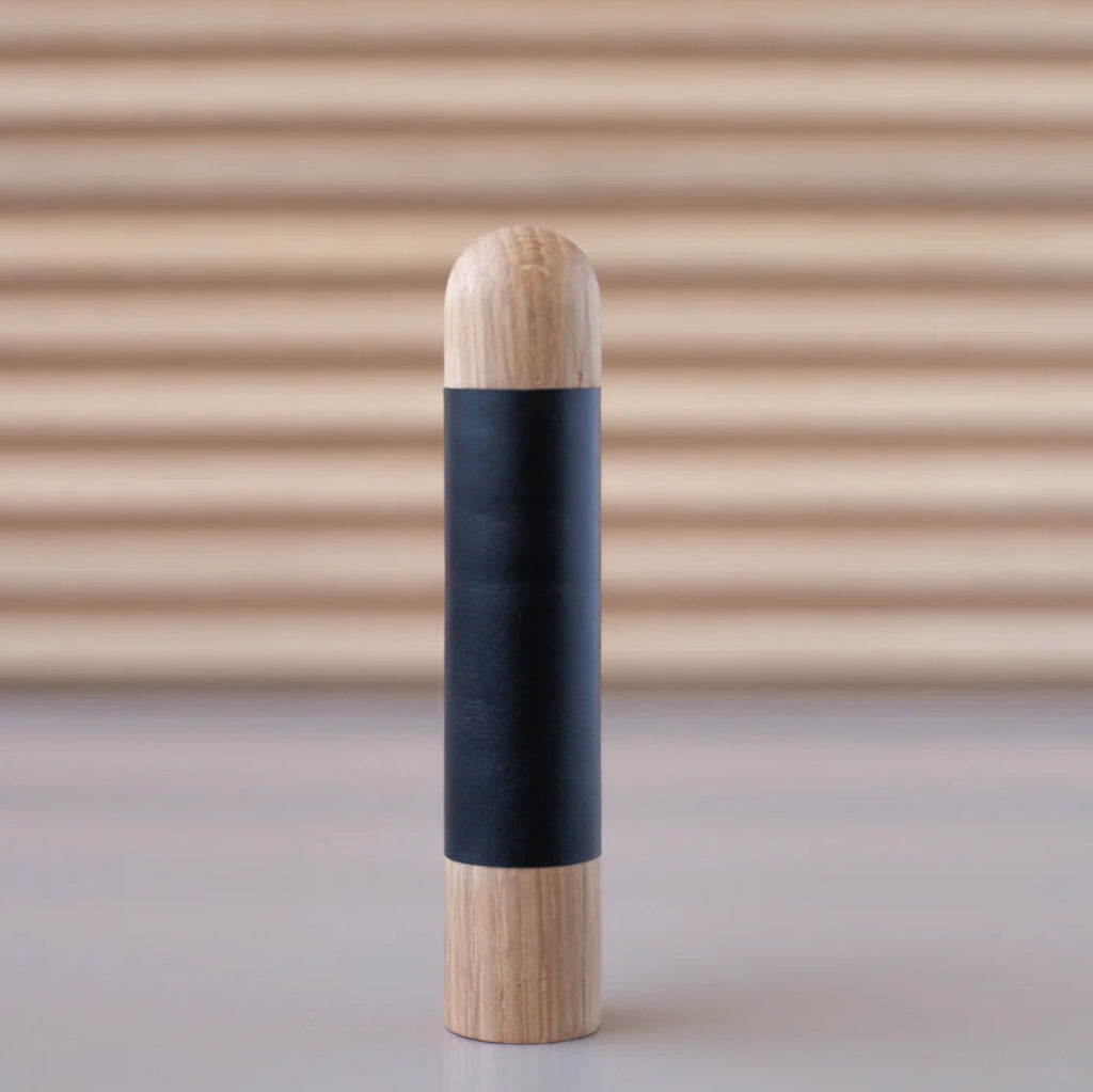 The Chapman Wood Pull with Leather by Chapman & Bose pairs solid hardwood with a hand-stitched leather grip, creating a warm, tactile accent for appliance handles, cabinet hardware, and custom millwork. The rounded form offers a soft, comfortable hand-feel, with the full leather wrap adding understated texture and material contrast.