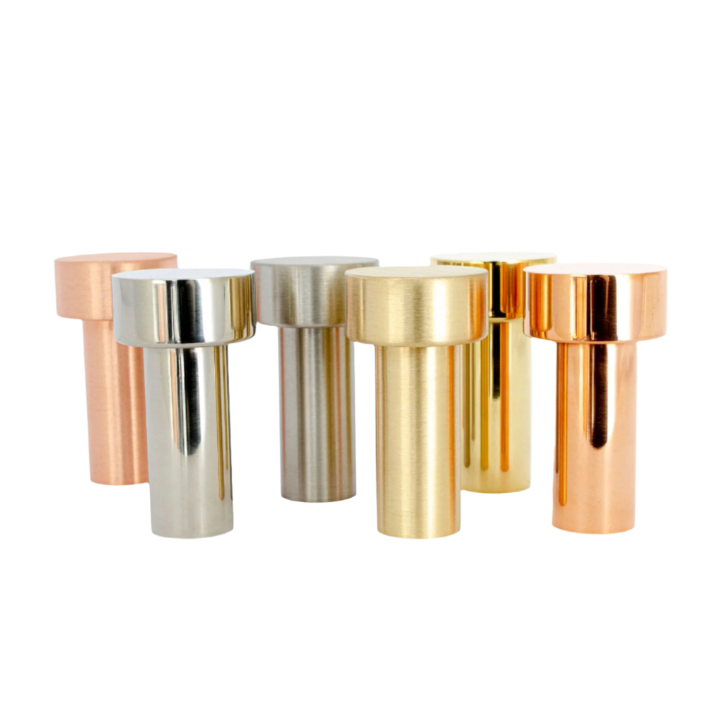 Note: materials are not lacquered and will age and oxidize over time. Refer to our care guide for best practices.