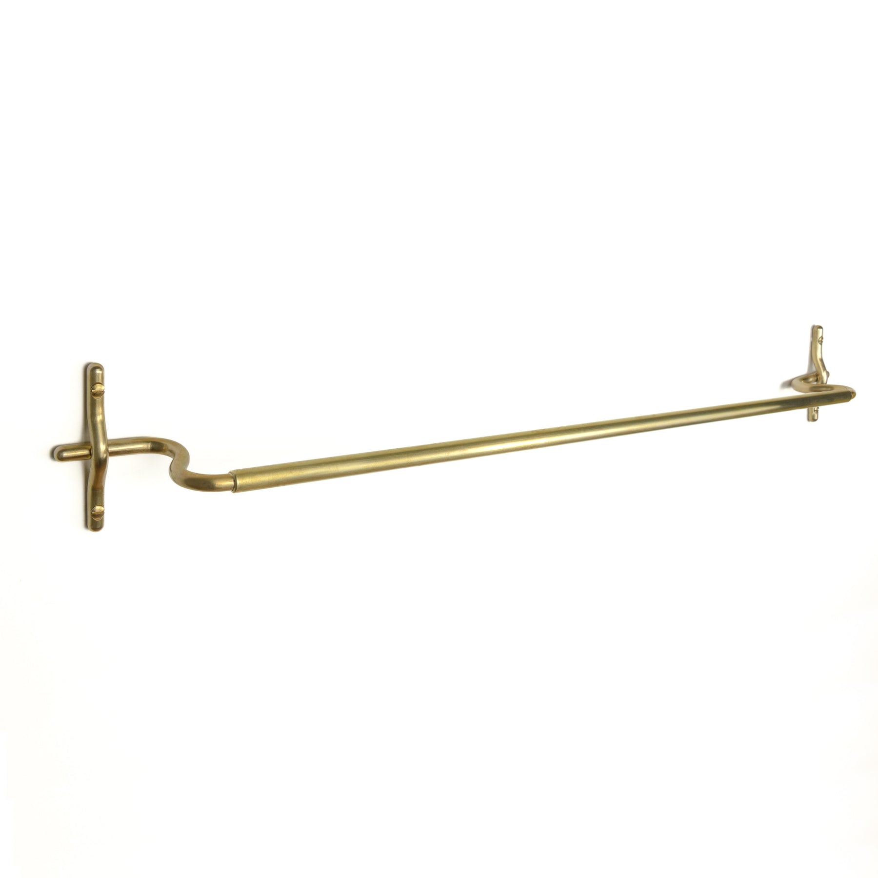 Fabricated from solid brass stock and finished by hand, the unlacquered satin surface will naturally develop through handling and moisture exposure, allowing the material to settle gracefully into its environment.