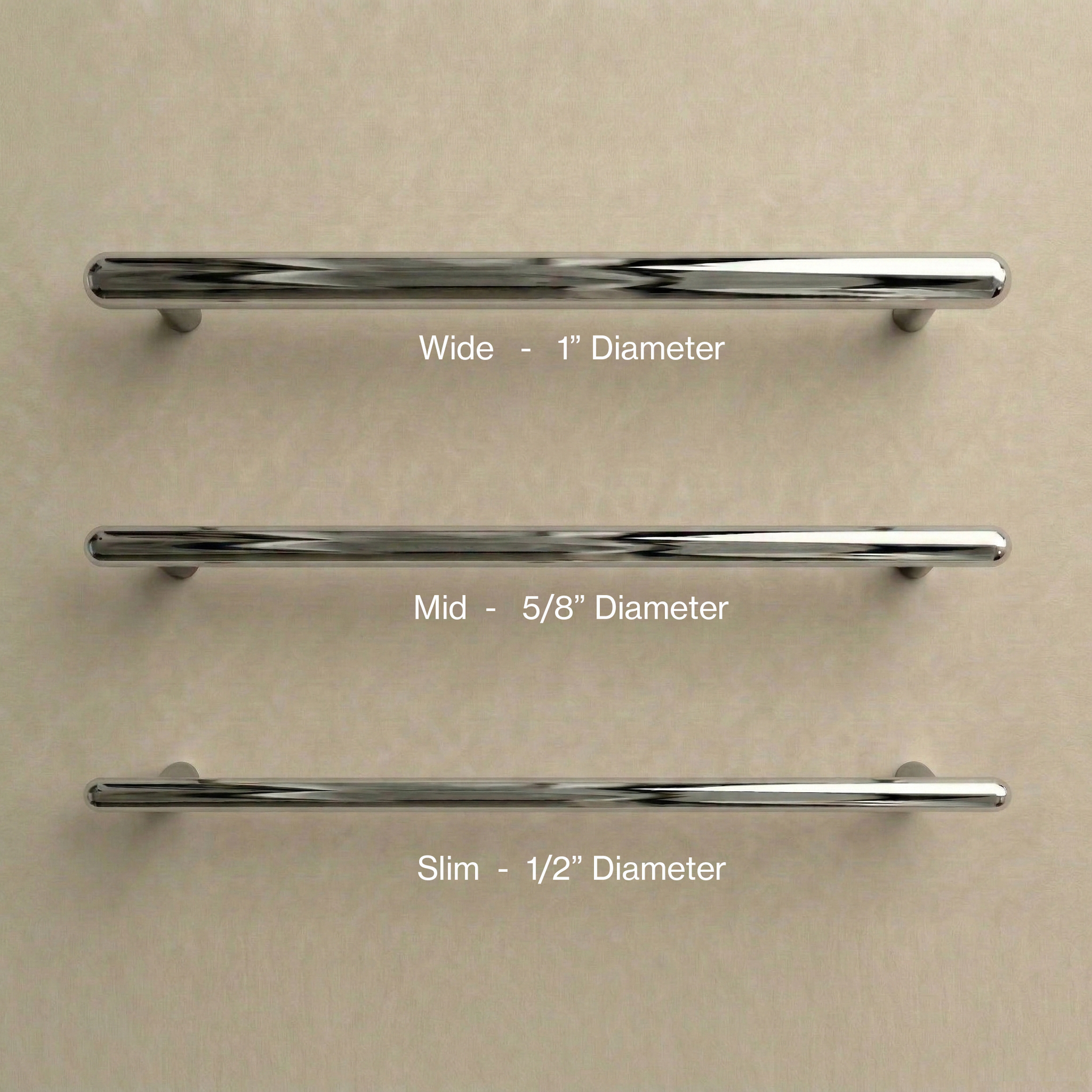 For pulls over 24" in the 1" (Mid) diameter — particularly on built-in refrigerator panels that are more resistant to open, such as Sub-Zero integrated fridges — three standoffs may be recommended for additional support.