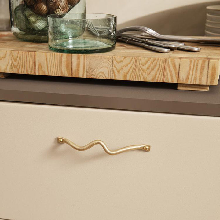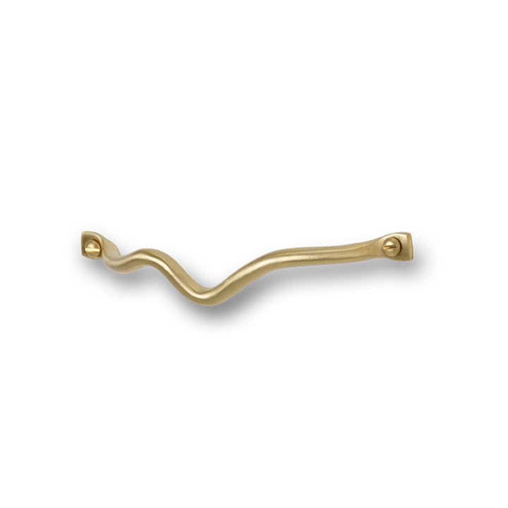 The Curvature Handle is an organically shaped handle that has been hand-formed in solid brass with a matte finish. The whimsical curves juxtapose the solidity of the material, and make for a playful, functional addition to any bedroom, bathroom, hallway or kitchen.